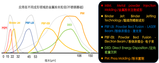 金屬粉末成形技術(shù)在發(fā)展數(shù)千年的歷史之后(最早在古埃及發(fā)現(xiàn)氧化鐵燒制的金屬制品,紀元前3000年),但是要談到大量制造還是在19世紀初的50年代開始,然而愛迪生發(fā)明電燈促使了粉末冶金(Powder Metallurgy, PM)的工業(yè)進步 – 鎢燈絲的制作已經(jīng)是20世紀之初(1909年),隨后鐵與銅金屬的粉末壓制與燒結(jié)(Press and sinter)便隨工業(yè)革命的帶動迅速取代傳統(tǒng)金屬加工的方法,尤其是在鑄造和鍛造的齒輪件;在近代約50年前(1960-1970年),金屬粉末成形技術(shù)迎來了兩個重要的年輕成員,金屬粉末注射成形(Metal – powder Injection Molding)與金屬增材制造(Metal Additive Manufacturing),更是成為人類有史以來最頂尖的大量金屬零件制造工藝。請隨Dr. Q的隨后說明來了解這三個當代主流金屬粉末成形技術(shù)。最重要結(jié)論l金屬粉末成形技術(shù)的核心是粉末科學(xué),這是重中之重;l粉末壓制與燒結(jié)法(PM),成形過程的潤滑劑(成形助劑)不超過3wt%,燒結(jié)后零件密度在85-95%相對密度、表面沒有致密層、幾何形狀為2-2.5D的大批量制品,適合單筆訂單大于10萬件的月產(chǎn)能;l傳統(tǒng)壓制成形的粉末硬度低必須具有塑性變形能力,較硬質(zhì)粉末與硬質(zhì)合金的粉末冶金需要的成形助劑含量較高,因此也需要長時間的脫脂;l金屬粉末注射成形(MIM),因為粉末細小導(dǎo)致黏結(jié)劑(成形助劑>6wt%)較多,燒結(jié)后零件密度大于98%相對度、表面形成致密層、幾何形狀為3D的批量制品,適合單筆訂單大于1萬件的月產(chǎn)能;l金屬增材制造(MAM),燒結(jié)后零件密度大于98%相對密度、表面沒有致密層、幾何形狀為3D的少量制品,適合1~1000件以內(nèi)的月產(chǎn)能。成形助劑根據(jù)MAM工藝不同而有區(qū)別。1.對于PM/MIM/MAM所使用的粉末可不可以共享?為什么?答:如圖1所表示,三大主流金屬粉末成形技術(shù)使用的粉末粒徑分布,其中PM最粗大、MIM最細小,增材制造則居中(包含圖中的Binder Jet, PBF-LB, PBF-EB, and DED)。