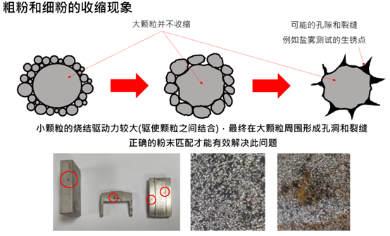 圖10.粉末顆粒過大造成產(chǎn)品的表面與內(nèi)部孔隙7.對于PM/MIM/MAM工藝的綜合差異分析答:雖然在前面已經(jīng)有所描述,但仍將各項比較參數(shù)整理放置于表2所示。由于MAM是區(qū)分為兩大類別,熔融法比較偏向PM使用較大顆粒粉末,而燒結(jié)法則是使用與MIM相近的顆粒粉末,近年來MAM技術(shù)的發(fā)展到極小(可以接打印心臟血管用記憶合金支架,直徑約0.1mm中空特征,德國技術(shù)),到直接打飛機的尾翼與翅膀的大形結(jié)構(gòu)(超過百公斤,大陸開發(fā)的指向性激光打印設(shè)備),都已經(jīng)超過PM/MIM的尺寸與重量限制(上下限),同時還做到模造技術(shù)無法成型的網(wǎng)格或是晶格結(jié)構(gòu)(統(tǒng)稱拓樸結(jié)構(gòu)),請讀者注意。表2. PM/MIM/MAM工藝的差異性